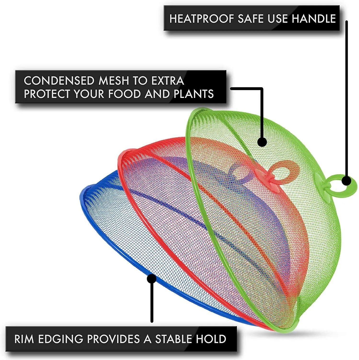 – Package includes 3 pack reusable mesh food tents.